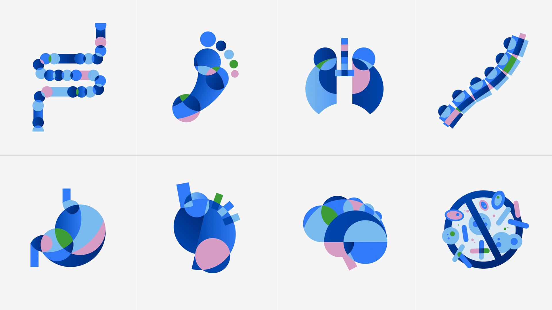 In an effort to bring warmth and humanity to the topic of personal health, complex biological subjects were reimagined using playful, modern geometric shapes.